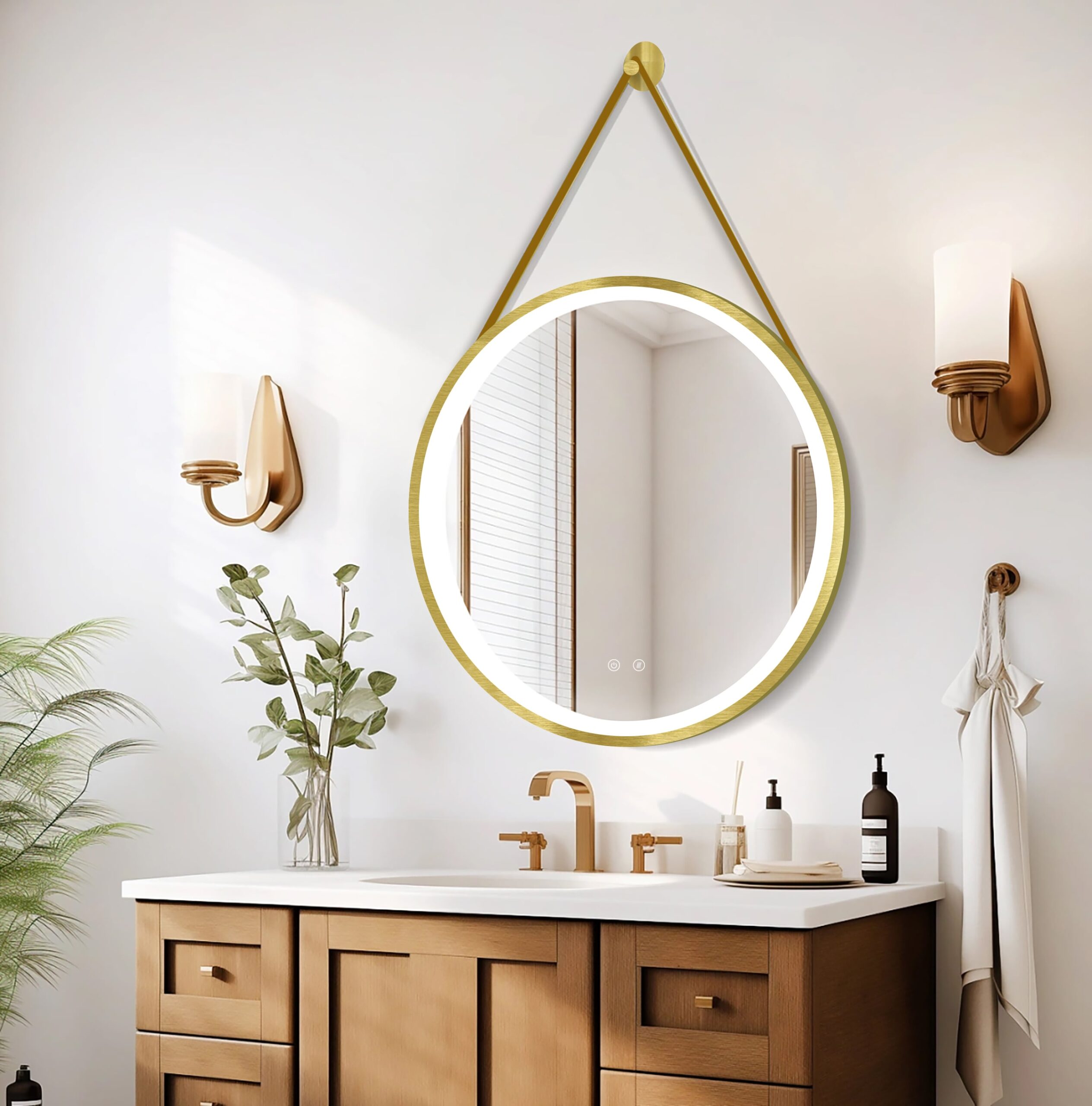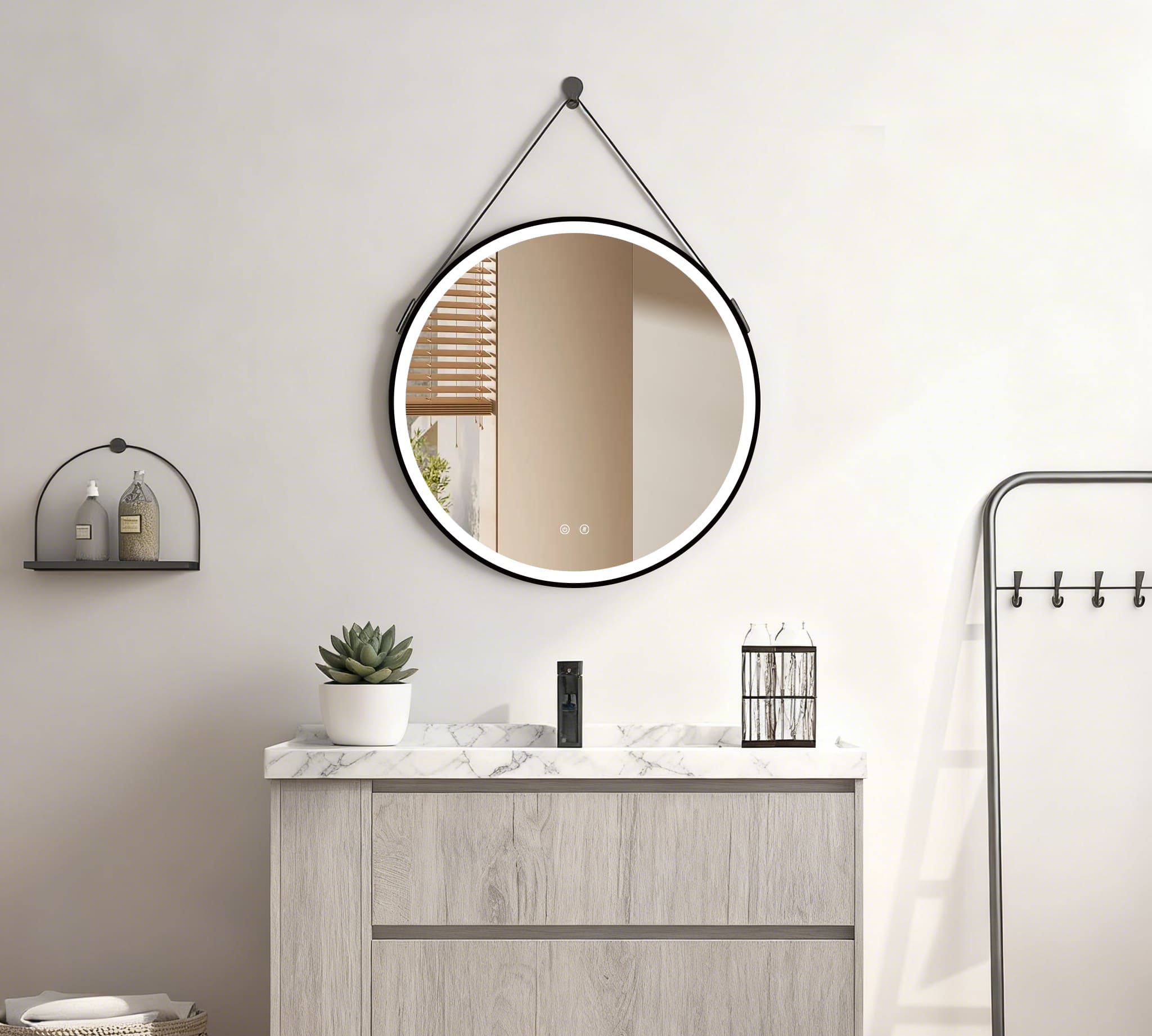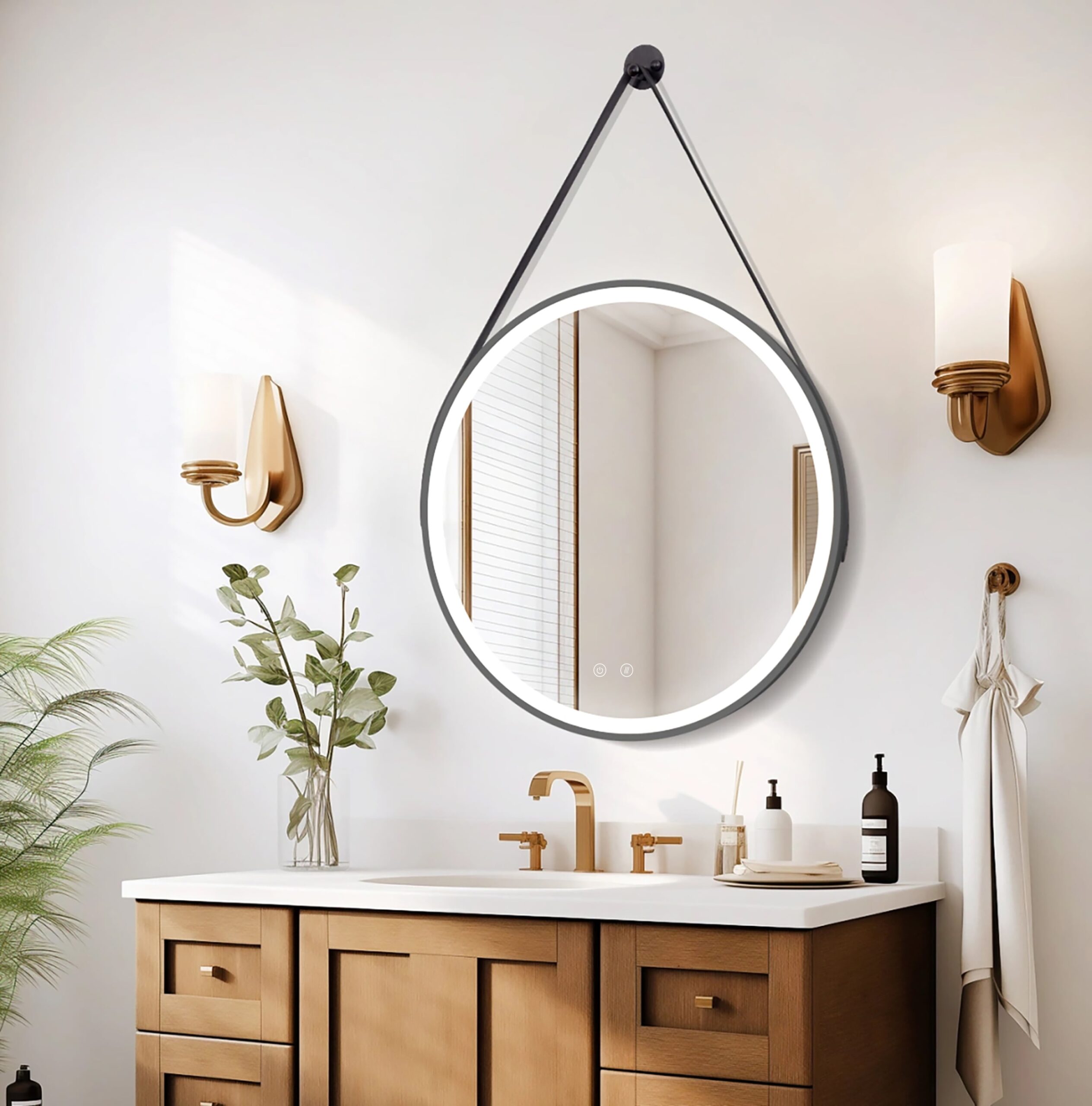 El espejo OLYMPUS combina un diseño atrevido con una funcionalidad avanzada. No es solo un espejo, es una declaración de estilo. Su colgador de cuero aporta una textura diferente que rompe con lo tradicional. 🔝 Es perfecto para quienes no se conforman con lo básico y buscan acabados de alta calidad. Disfruta de un baño con carácter y tecnología punta. 🧖♂️
