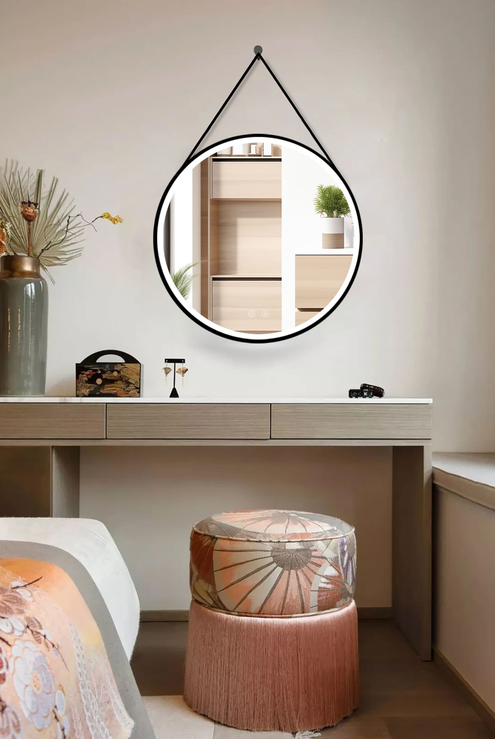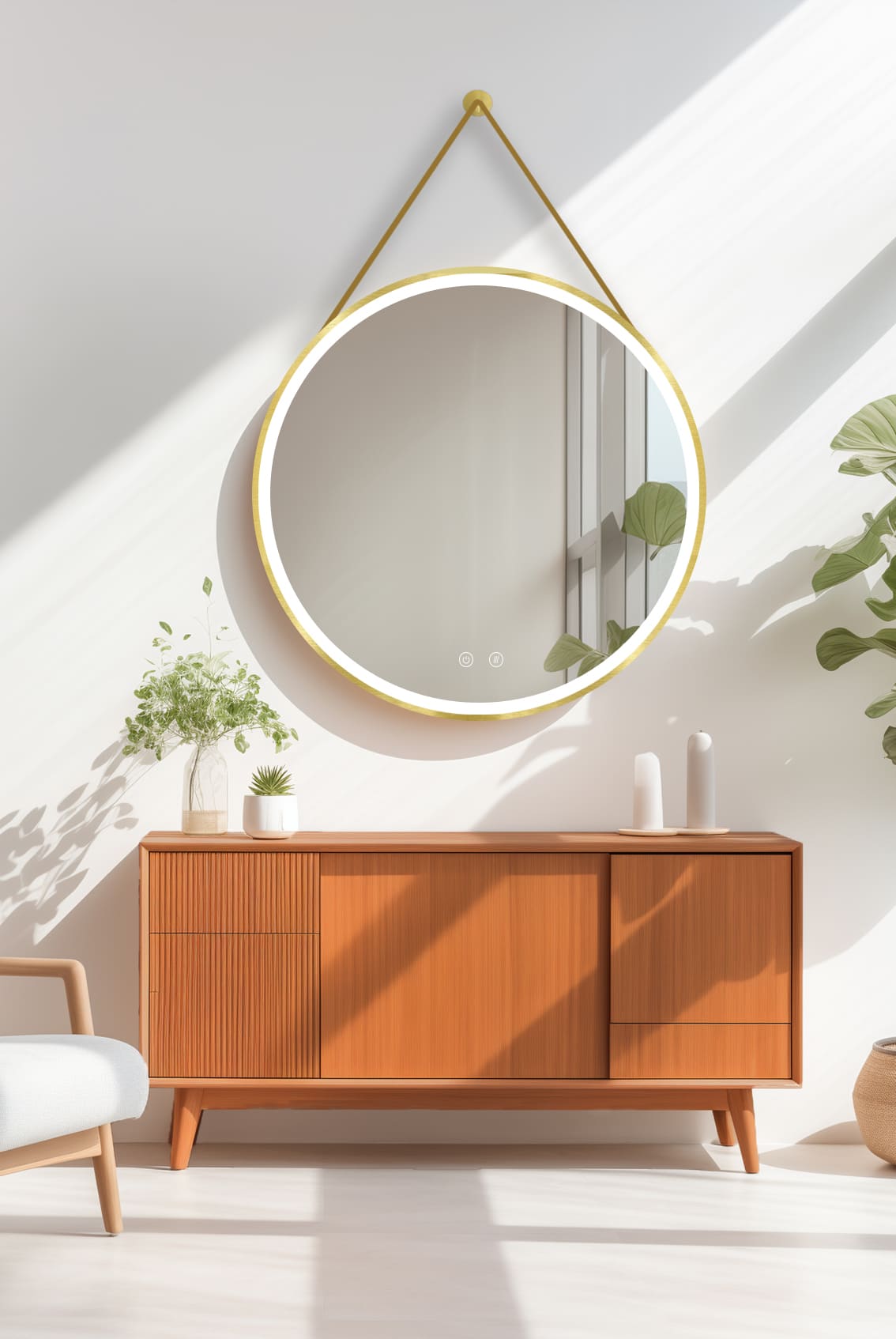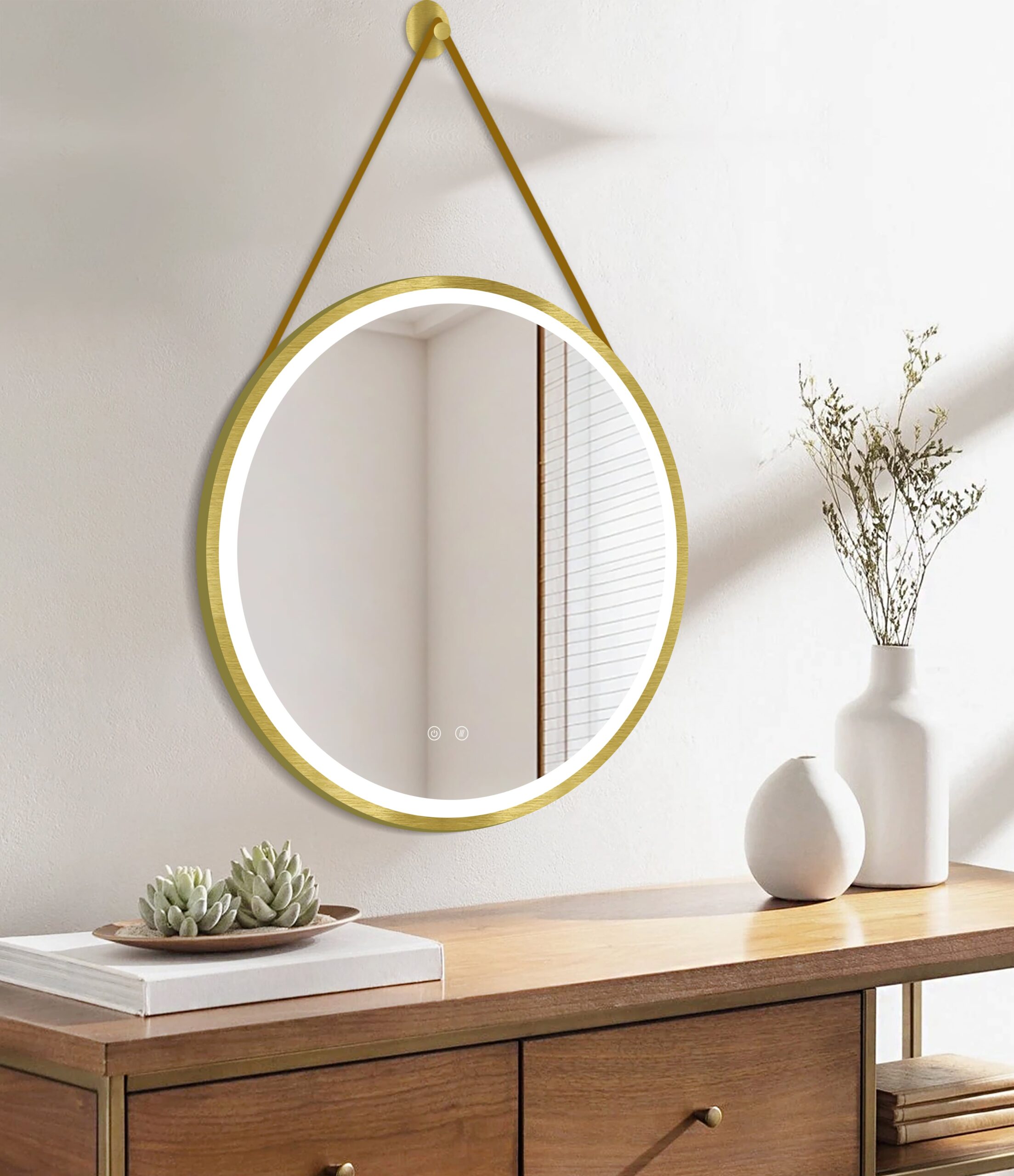 El espejo OLYMPUS combina un diseño atrevido con una funcionalidad avanzada. No es solo un espejo, es una declaración de estilo. Su colgador de cuero aporta una textura diferente que rompe con lo tradicional. 🔝 Es perfecto para quienes no se conforman con lo básico y buscan acabados de alta calidad. Disfruta de un baño con carácter y tecnología punta. 🧖♂️